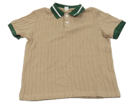 Béžovo-smaragdové žebrované/vzorované polo tričko SHEIN