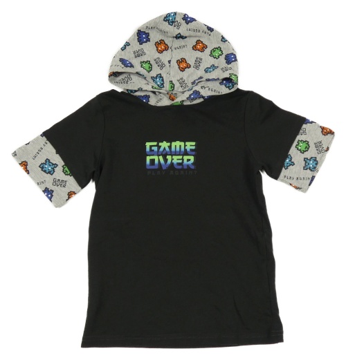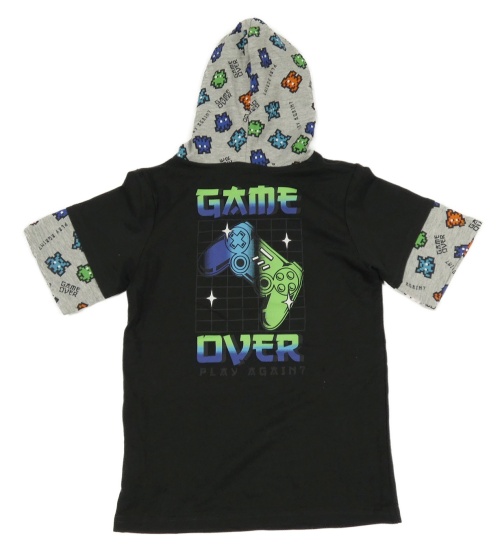 Čierno-sivé tričko s nápismi a ovladačem a kapucňou Y.F.K.