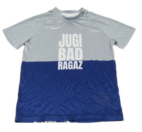 Sivo-tmavomodré tričko s nápisom
