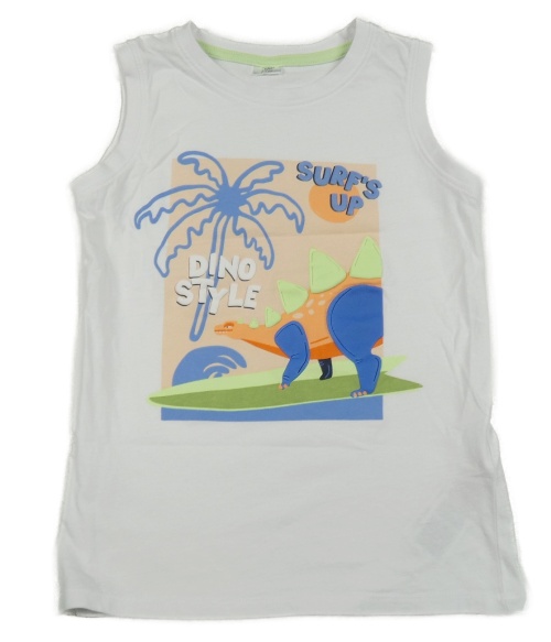 Biele tielko s dinosaurom a palmou a nápismi KIDS