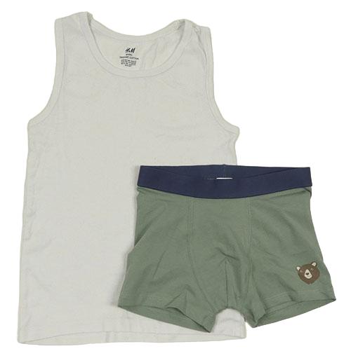 2set - Biele tílko + zelenošedé boxerky s medvěďom