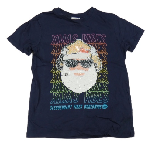 Tmavomodré vianočné tričko so Santou z flitrů George