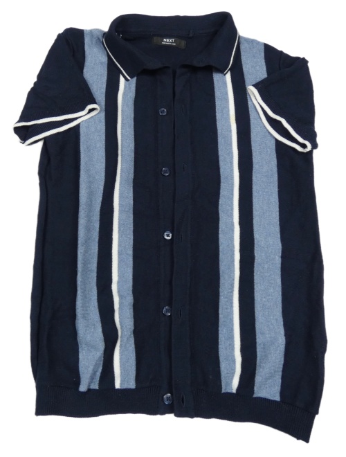 Tmavomodré pletené prepínaci tričko s modro-bielymi pruhmi a golierikom Next