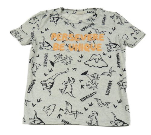 Šedo-černé tričško s nápisom a dinosaurami Shein