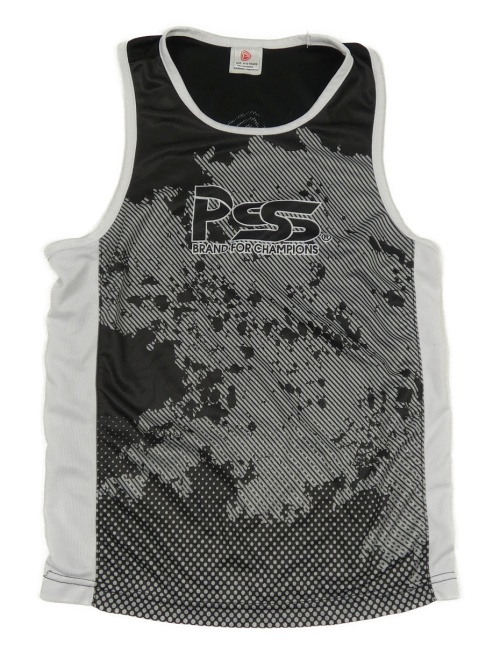 Čierno-bielo-sivé vzorované športové tielko s nápisom