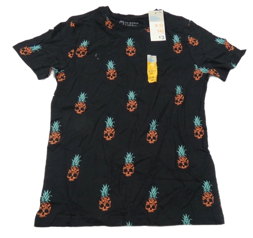 Nové - Čierne tričko s ananásy s lebkami Primark