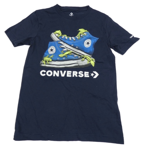 Tmavomodré tričko s topánkami a logom converse