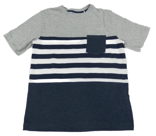 Tmavomodro-sivo-biele pruhované tričko s vreckom Yigga