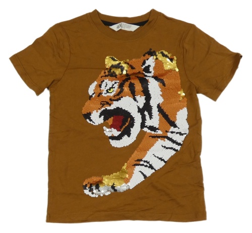 Hnedé tričko s tygrem z flitrů H&M