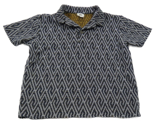Tmavomodro-bielo-horčicové vzorované úpletové polo tričko River Island