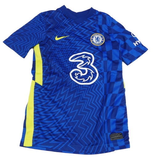 Tmavomodro-safírovo-kriklavoě žltý vzorovaný funkčné futbalový dres Chelsea a číslami