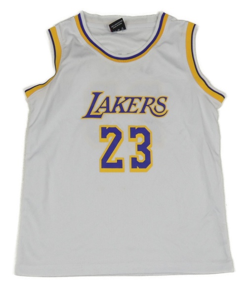 Bielo-tmavožluto/fialové športové basketbalové tielko s číslom