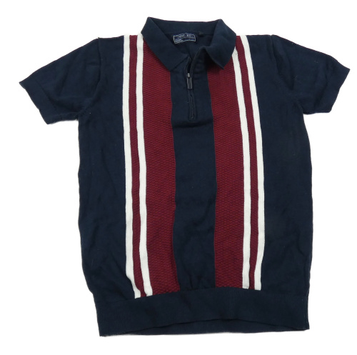 Tmavomodro-vínovo-biele pletené polo tričko Next