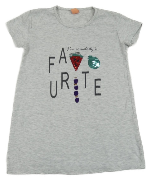 Sivé melírované tričko s nápisom a obrázky z překlápěcích flitrů