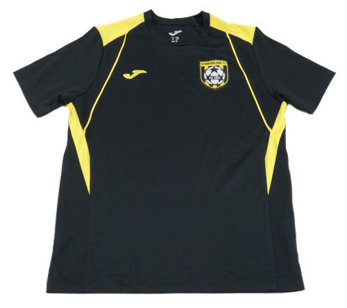 Čierno-žlté športové funkčné tričko s nášivkou a logom joma
