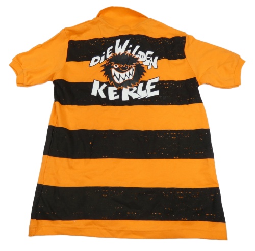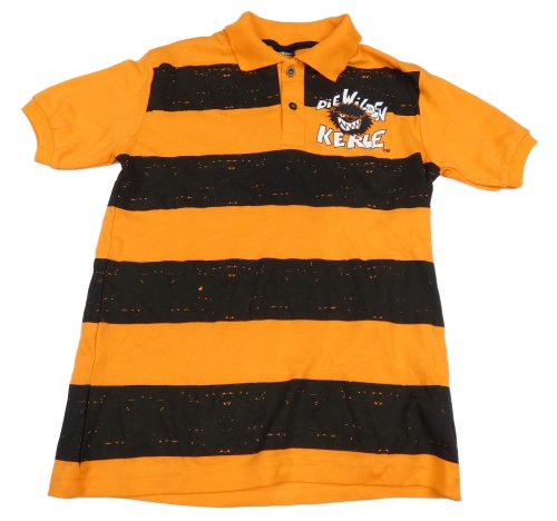 Neónově oranžovo-čierne pruhované polo tričko s príšerkou