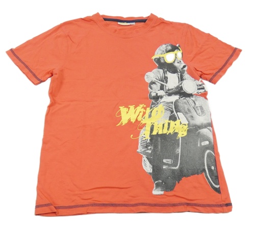 Korálové tričko s motorkou a nápismi Kids