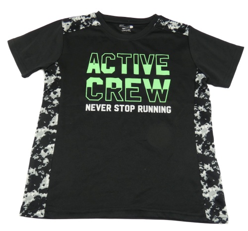Čierno-sivo-zelené športové tričko s vzorovanymi pruhmi a nápisom Ergeenomixx