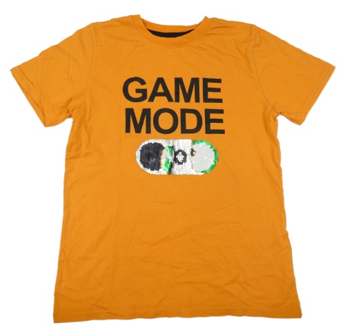 Oranžové tričko s nápisom a obrázkem z flitrů H&M