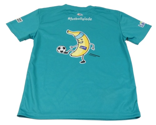 Modro-zelené športové tričko s futbalovým loptou a banánem