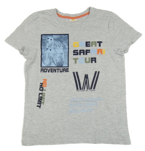 Svetlosivé melírované tričko so surikatami a nápismi Kids