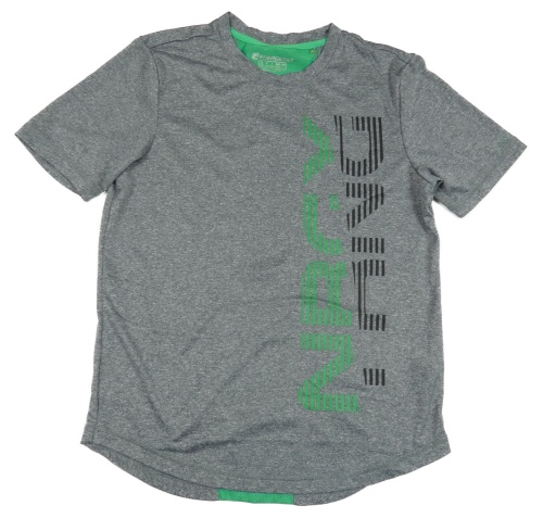 Tmavošedo/zelené melírované funkčné športové tričko s nápismi energetics