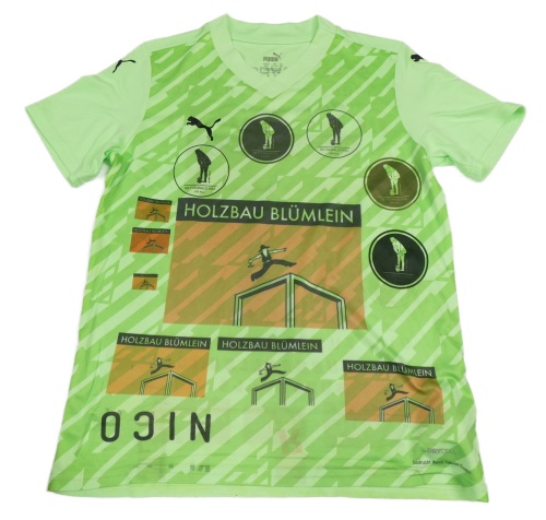 Neónově zelené športové tričko s obrázkami a nápismi Puma