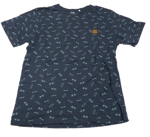 Tmavomodré tričko so skateboardmi Yigga