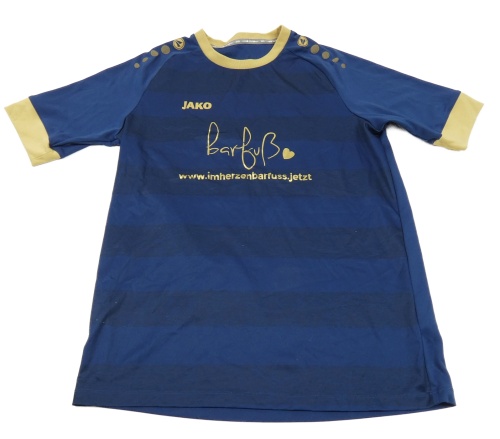 Tmavomodro-béžové funkčné futbalové tričko s logom a loptou JAKO