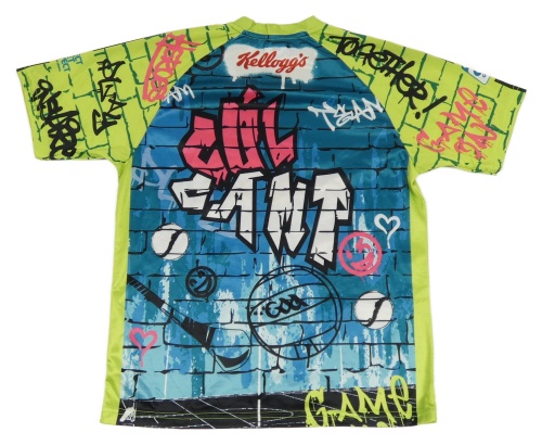 Zeleno-modré športové tričko s nápismi