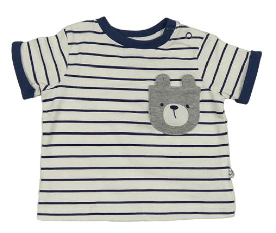 Bielo-tmavomodré pruhované tričko s vreckom s medvěďom