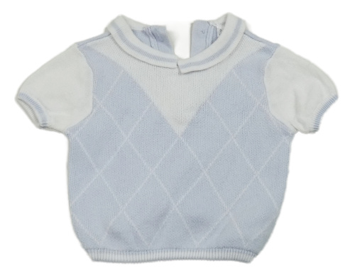 Světlemodro-biele kárované pletené polo tričko