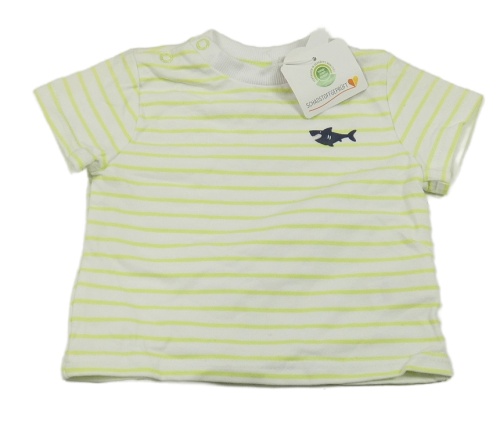 Nové - Bielo-svetlozelené pruhované tričko so žralokom Topomini