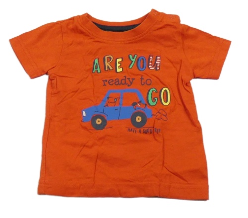 Červené tričko s autom a nápismi