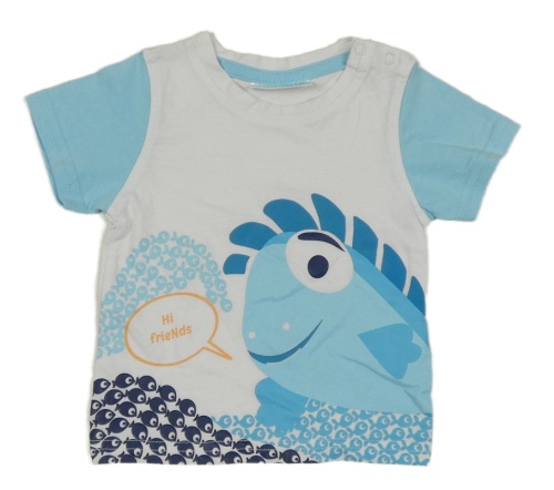 Bielo-svetlomodré tričko s rybou Ergee