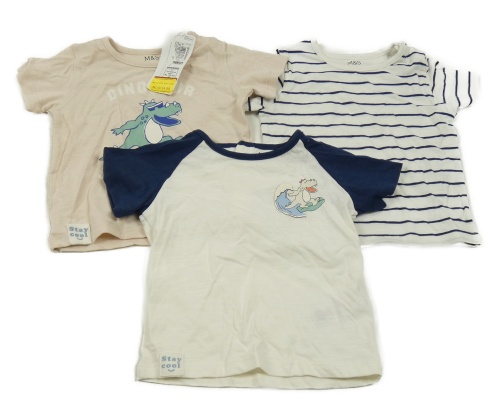 Nové - 3x tričko - béžové s dinosaurem + bílo-tmavomodré pruhované + smetanovo-tmavomodré s dinosaurom M&S