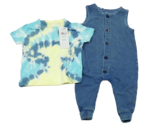Nové - 2 set - modrý teplákový overal + žlto-modré batikované tričko Pep&Co