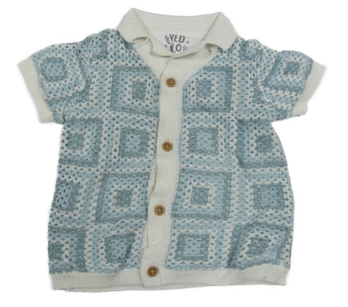 Bielo-světlemodro-břidlicové vzorované ažurové pletené prepínaci podšité tričko s golierikom F&F