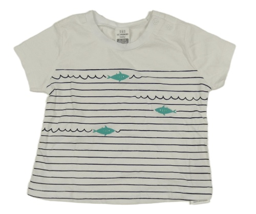 Bielo-čierne prúžkované tričko s rybkami LC Waikiki