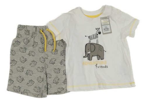 2set - Biele tričko so slonom s zebrou + sivé melírované kraťasy Primark