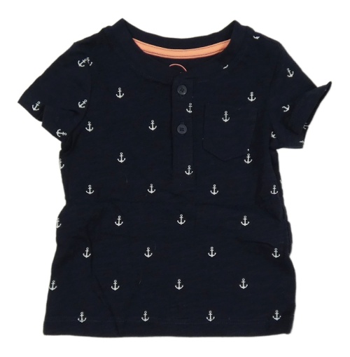 Tmavomodré melírované tričko s bílými kotvami a vreckom C&A