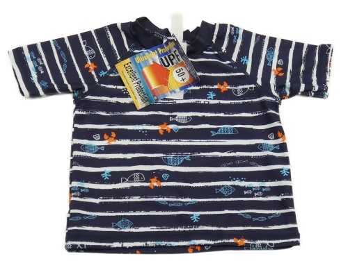 Nové - Tmavomodro-biele pruhované UV tričko s rybami