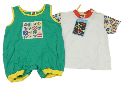 Nové - 2 set - bielo-farebné tričko + zeleno-žltý kraťasový overal s nášivkou