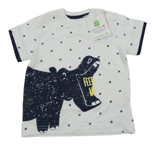 Nové - Bielo-tmavomodré vzoroané tričko s hrochem Topomini