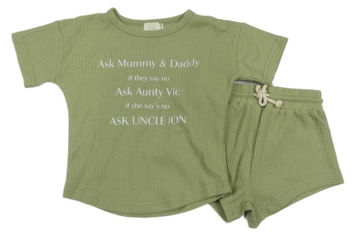 2set - Khaki rebrované tričko s nápisem + kraťasy