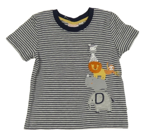Tmavomodro-sivé pruhované tričko so zvieratkami Liegelind