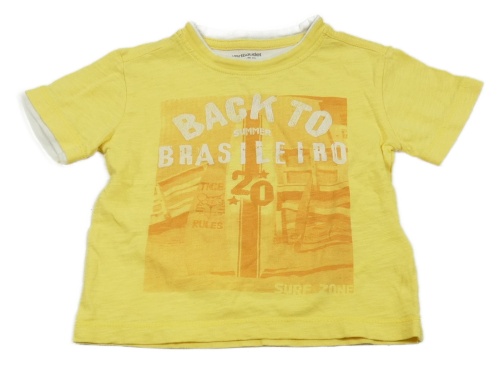 Žlto-biele tričko s nápismi a sufrmi Vertbaudet