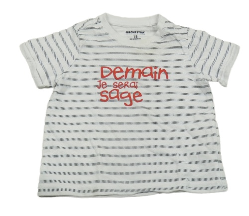 Bielo-tmavomodré pruhované tričko s nápisom Orchestra