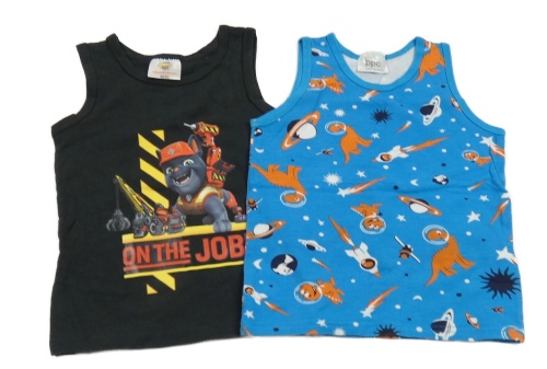 2x tílko - černé s Chargerem - Rubbleova parta + modré s raketami a dinosaurami