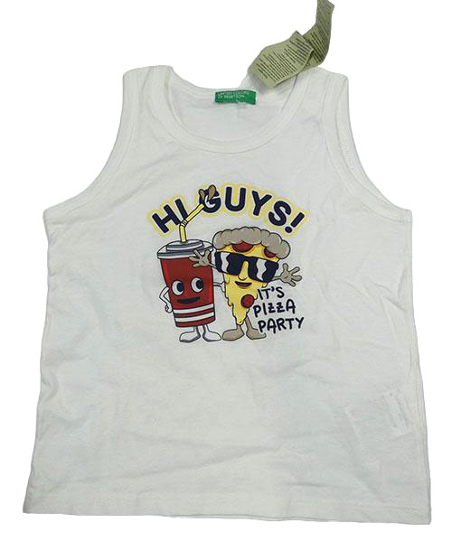 Nové - Biele tielko s pizzou a nápojem Benetton